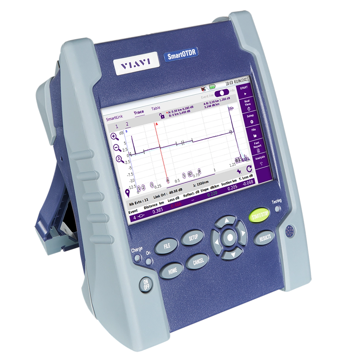 El medidor de fibra portátil SmartOTDR es un dispositivo asequible y fácil de usar para técnicos de cualquier nivel, con sólidas opciones de conectividad inalámbrica que incrementan la productividad en cualquier ubicación. En un único dispositivo OTDR, hemos integrado todas las pruebas esenciales de fibra para los técnicos de cualquier nivel: análisis de las terminaciones de fibra, pruebas de pérdida óptica y localizador visual de fallos.